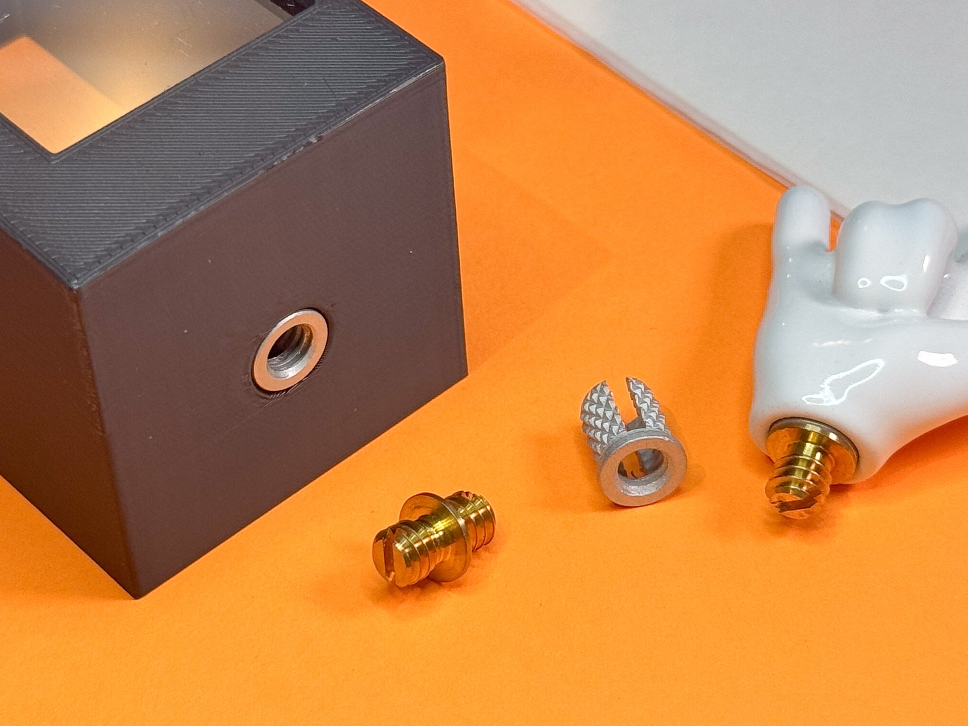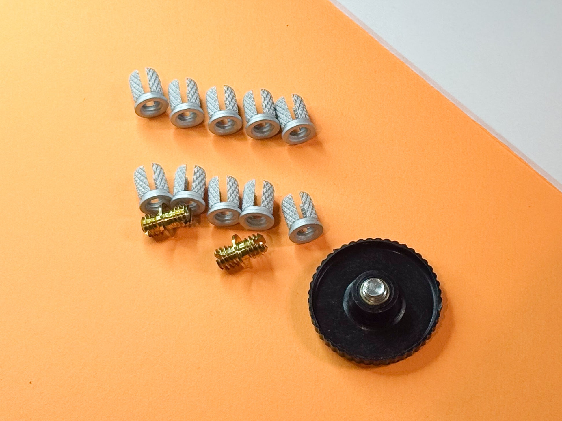 This kit comes with the hardware you need to add durable metal 1/4-20 threads to your 3D printed parts.